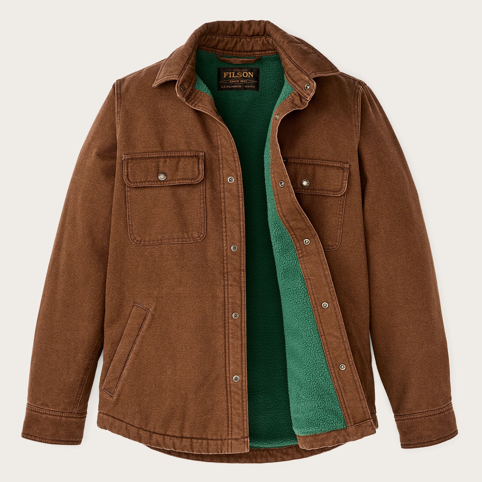 Notre surchemise doublée en polaire renforce un classique de Filson avec une isolation adaptée aux températures les plus froides. Elle est fabriquée en toile de coton robuste 283 g pour des années de bons et loyaux services et doublée en polaire au niveau du corps et en polyfill au niveau des bras. Vêtement lavé pour une sensation de vêtement porté dès le premier jour. Épaules plissées pour une plus grande liberté de mouvement. Poches chauffe-mains doublées en polaire.