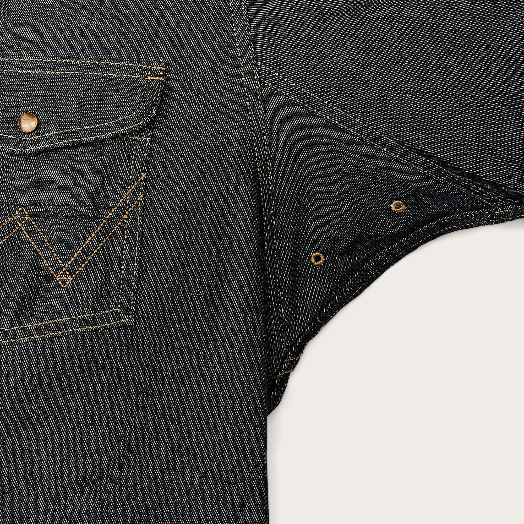 Une chemise résistante en édition spéciale, fabriquée à partir de denim 207 g, avec une finition en jersey droitier. La fiabilité et le confort légendaires du denim dans les ranchs, sur les chantiers et sur les navires de guerre en ont fait le tissu préféré pour le travail et la vie quotidienne. Les épaules sont fabriquées à partir d'une toile cirée lavable qui ajoute de la durabilité et un peu de résistance à l'eau si vous êtes pris sous une averse sans veste. L'empiècement arrière est aéré pour une meilleure respirabilité, et le devant est en pointe pour une touche western. Des boutons-pression en bronze patiné permettent de fermer le devant, les rabats des poches et les poignets. Les avant-bras sont renforcés par la même toile cirée lavable que l'empiècement du dos. Le logo « W » signature de Wrangler est brodé sur les poches avant.