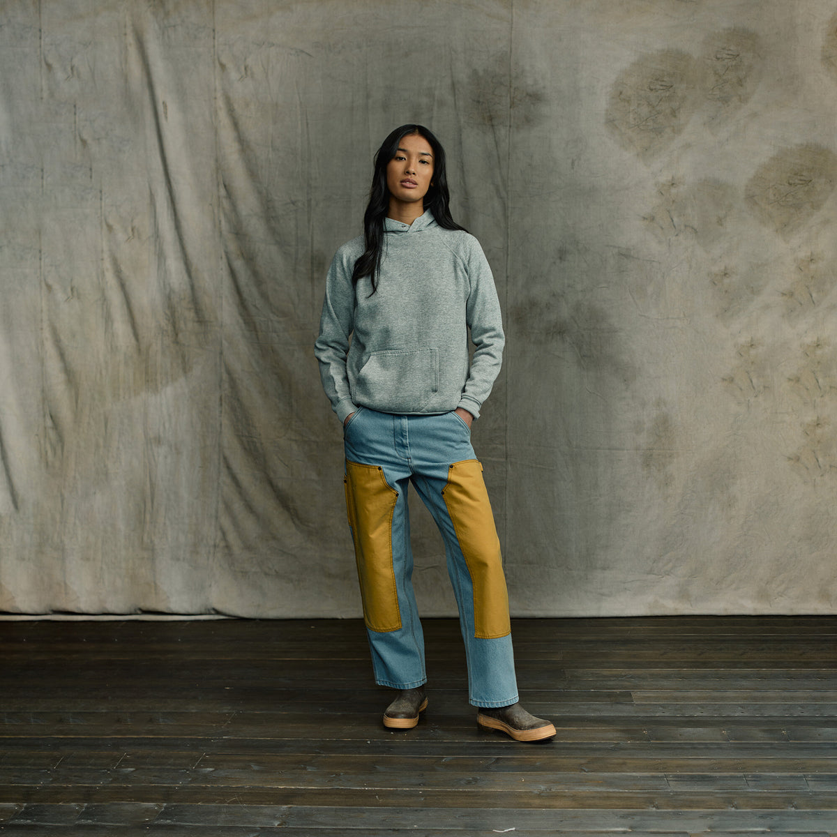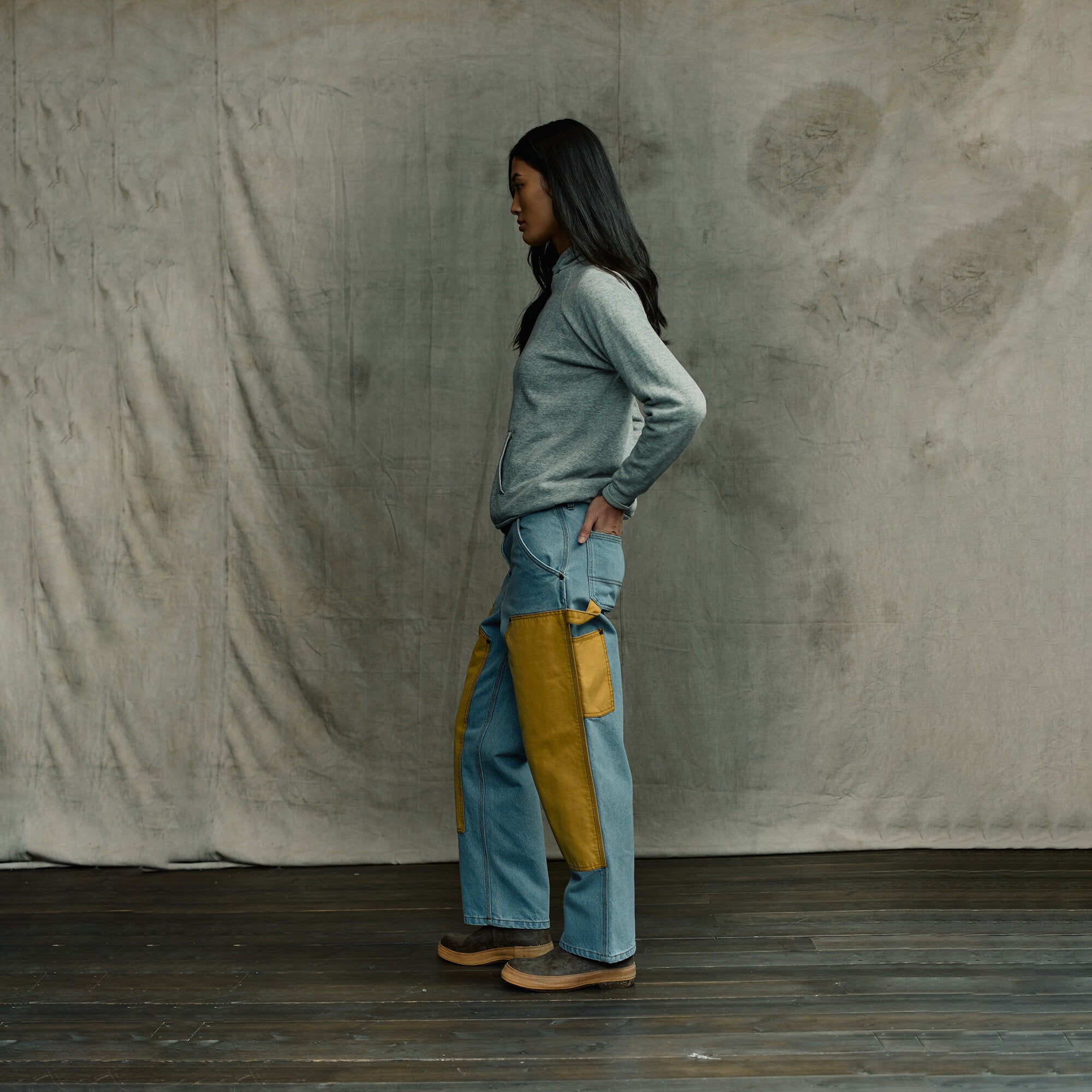 Nos jeans de travail classiques sont fabriqués à partir de denim robuste de première qualité pour des décennies de service fiable. Aujourd'hui incontournable, le denim est devenu un tissu de confiance pour les mineurs et les éleveurs à la fin du XIXe siècle. Les faces avant sont renforcées par une couche de notre emblématique toile Tin Cloth pour une protection accrue. La triple piqûre sur les coutures critiques et la construction rivetée aux points de tension renforcent la robustesse. Les grandes ouvertures des poches facilitent l'accès au contenu, et les jambes comportent des poches pour les outils et une boucle pour le marteau. Braguette zippée et fermeture à la taille par un bouton à tige en métal.