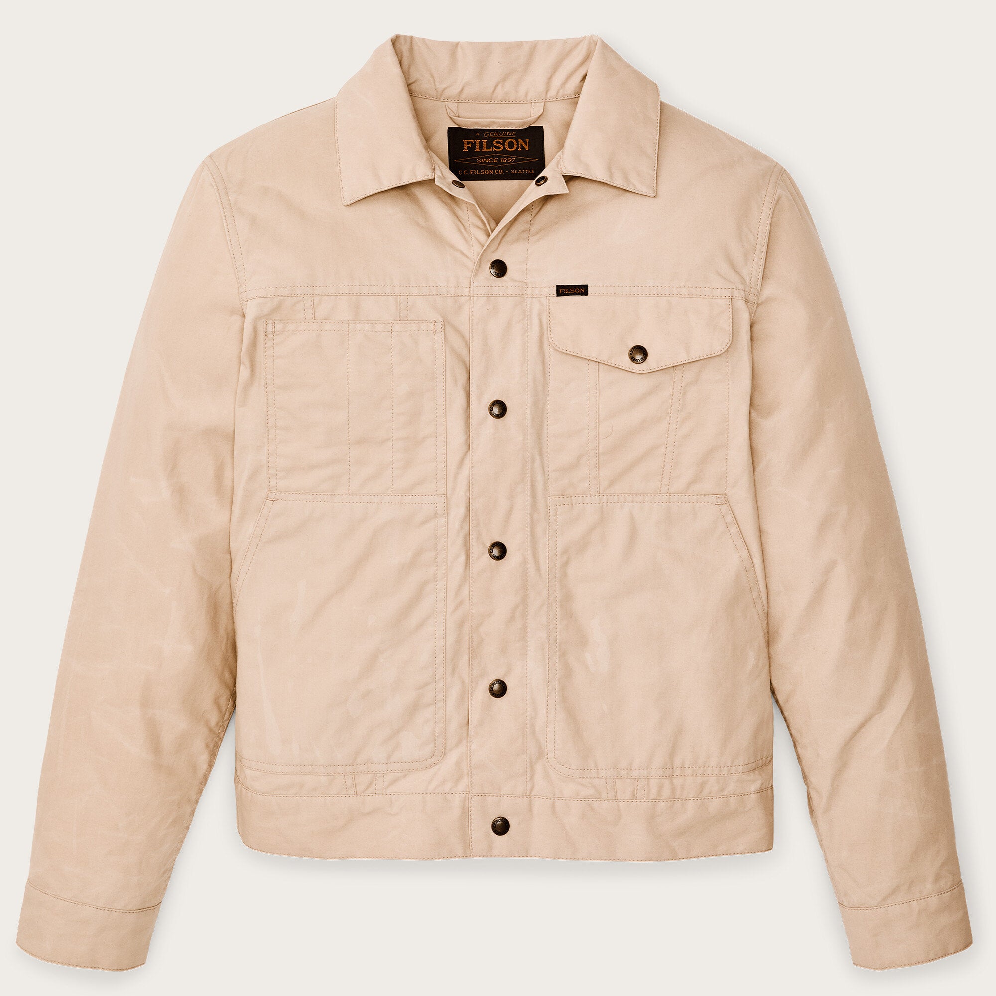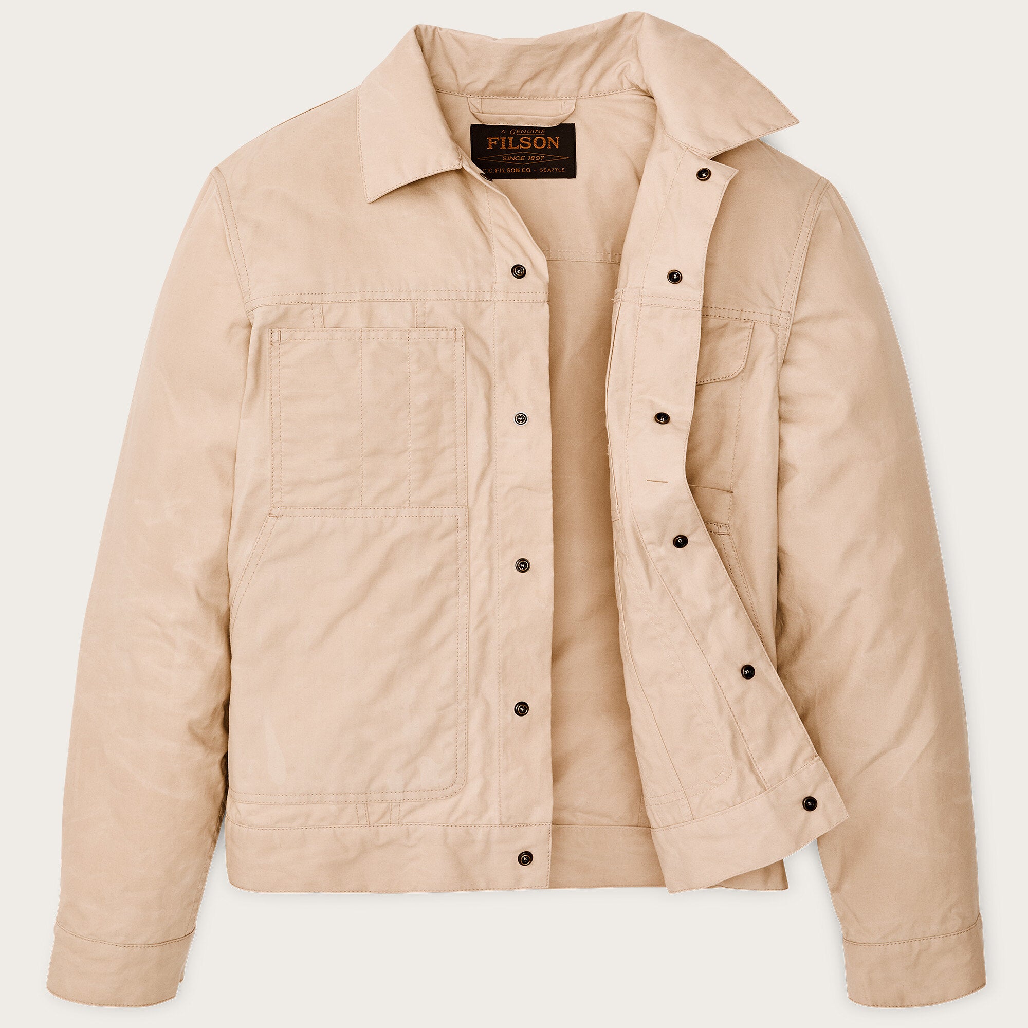 The Dry Wax Short Cruiser leverages our century of experience in manufacturing quality waxed-cotton jackets. Unlined for wear in warmer conditions, it blocks away wind and rain when the weather turns. The dry-wax finish is washable for easy care. The hip-length cut allows easy access to pockets or a tool belt and won’t ride up when seated. Durable metal snaps secure the front and adjustable cuffs. The left chest pocket is flap-covered, and the right slotted for penlights or pencils. Large hand pockets are reinforced with bar-tack stitching for strength.