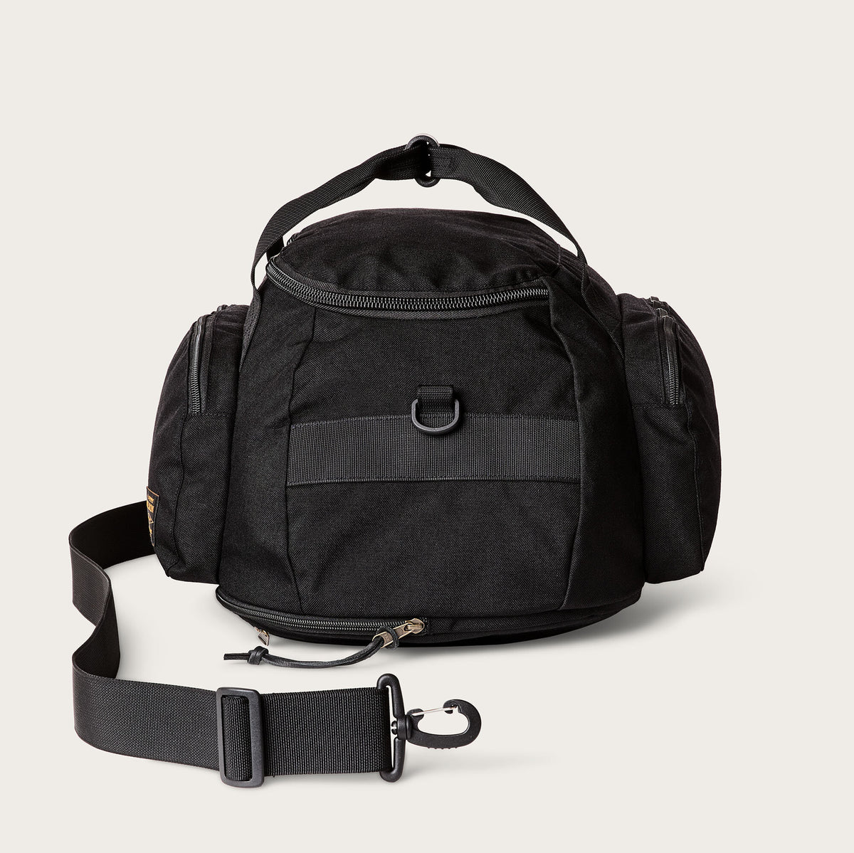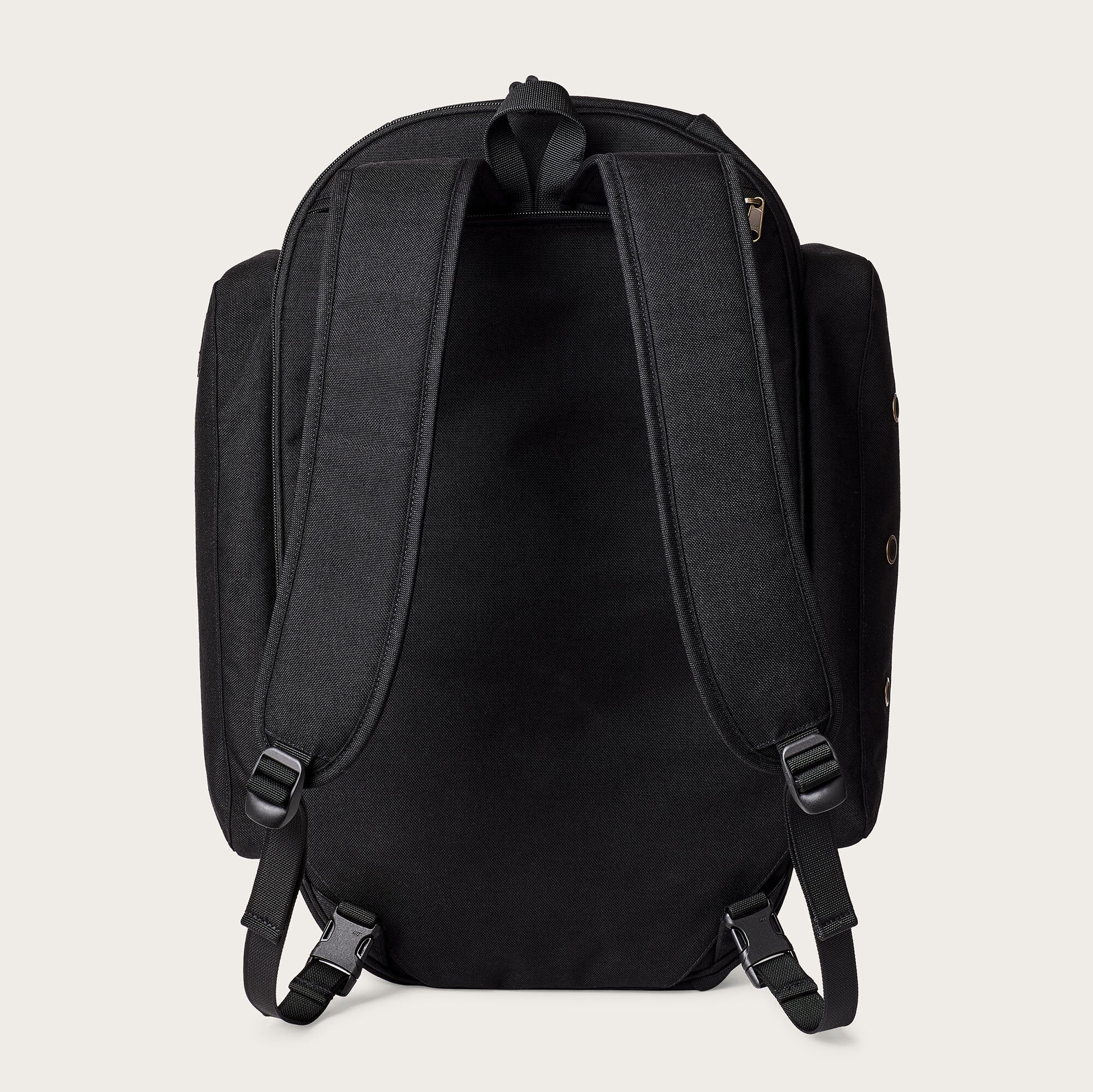 This all-purpose bag combines versatile utility and exceptional durability. The lightweight 1000-denier nylon fabric is woven with the same basketweave pattern as ballistic nylon. The U-shaped top zipper provides easy access to gear. A zippered exterior pocket with internal security pocket keeps essentials close at hand. A second exterior zipper accesses a bag that expands into the main compartment to keep wet or dirty gear separated from the rest of your load. Padded backpack straps can be stowed into the bottom sleeve to avoid snagging on other gear or in luggage compartments. The handles and detachable shoulder strap are made from strong, wide nylon webbing. Bridle Leather carry grip. Padded pocket for a laptop up to 16”.