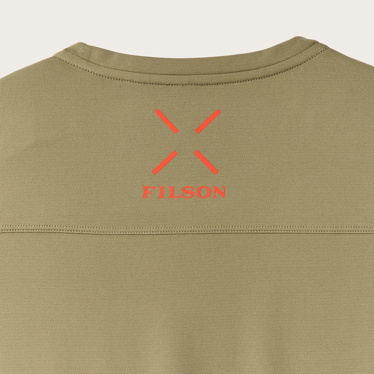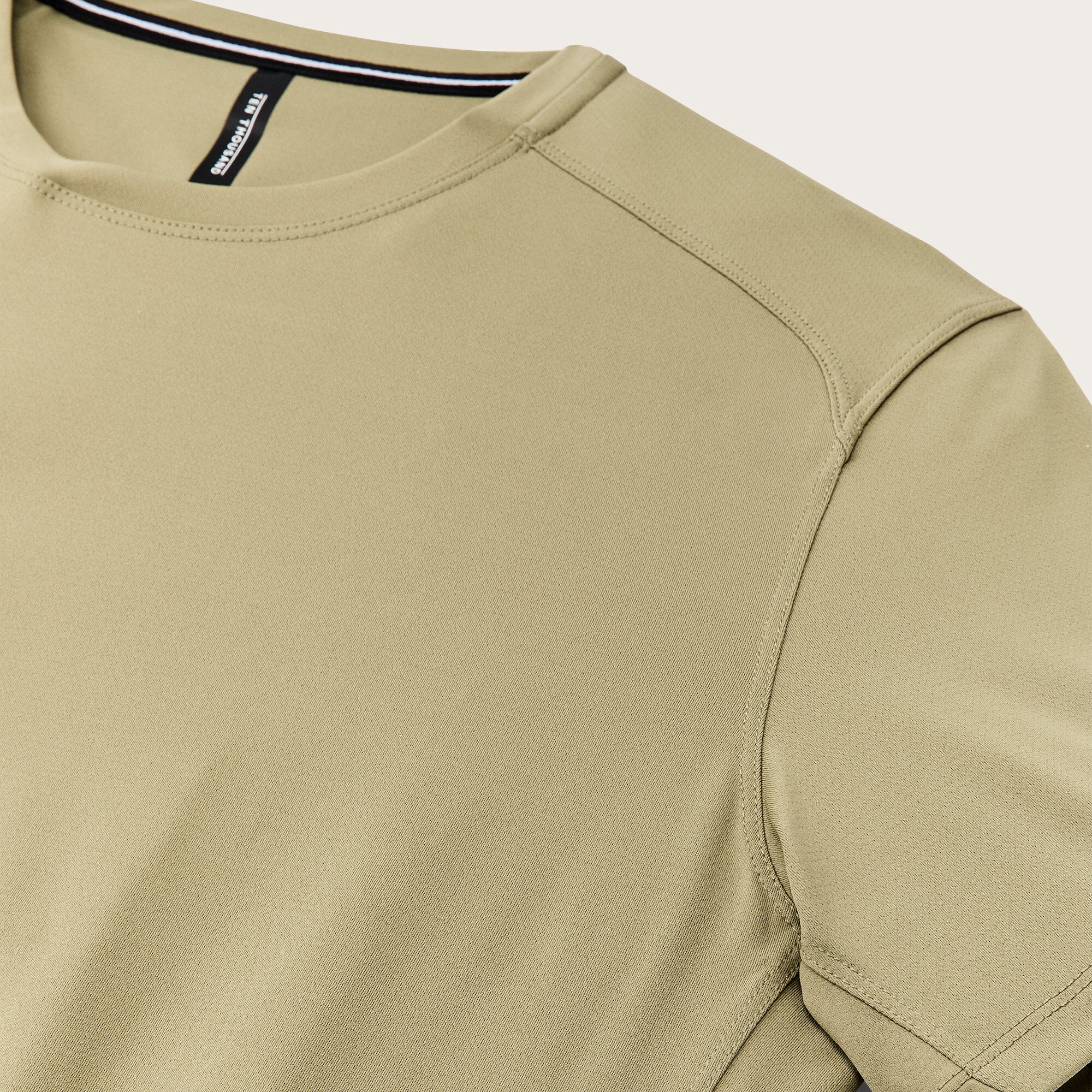 The lightweight micro-knit fabric is tested for dependable abrasion resistance. Reinforced shoulder yokes provide added protection against wear from backpack straps. The material is engineered to wick sweat away from the body and dry quickly. Treated for permanent odor resistance, this T-shirt avoids the residual stink that accumulates in common synthetic clothing.