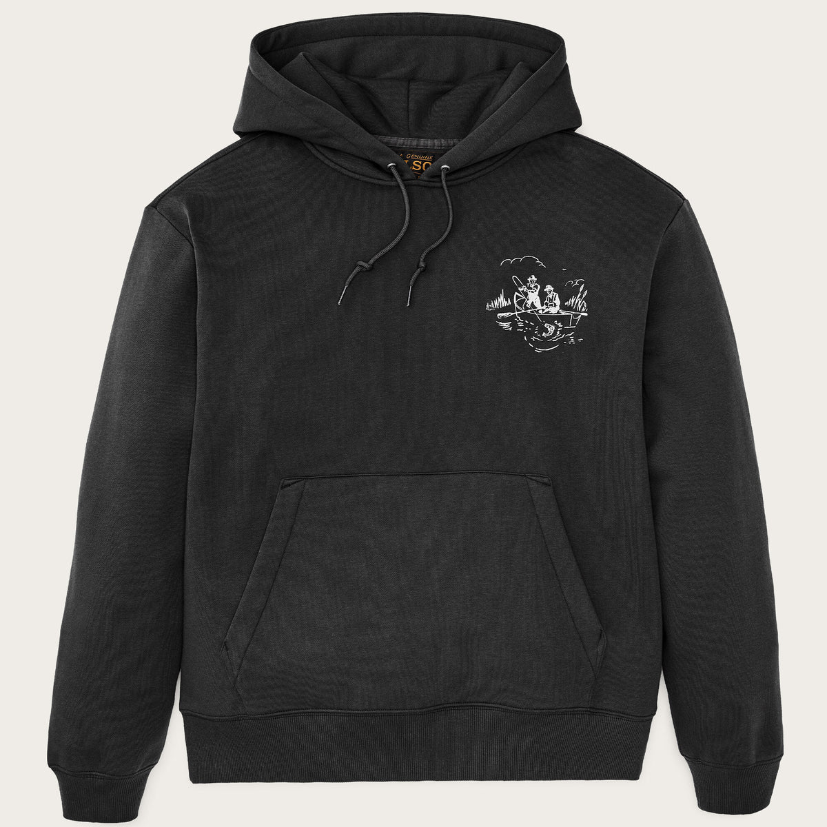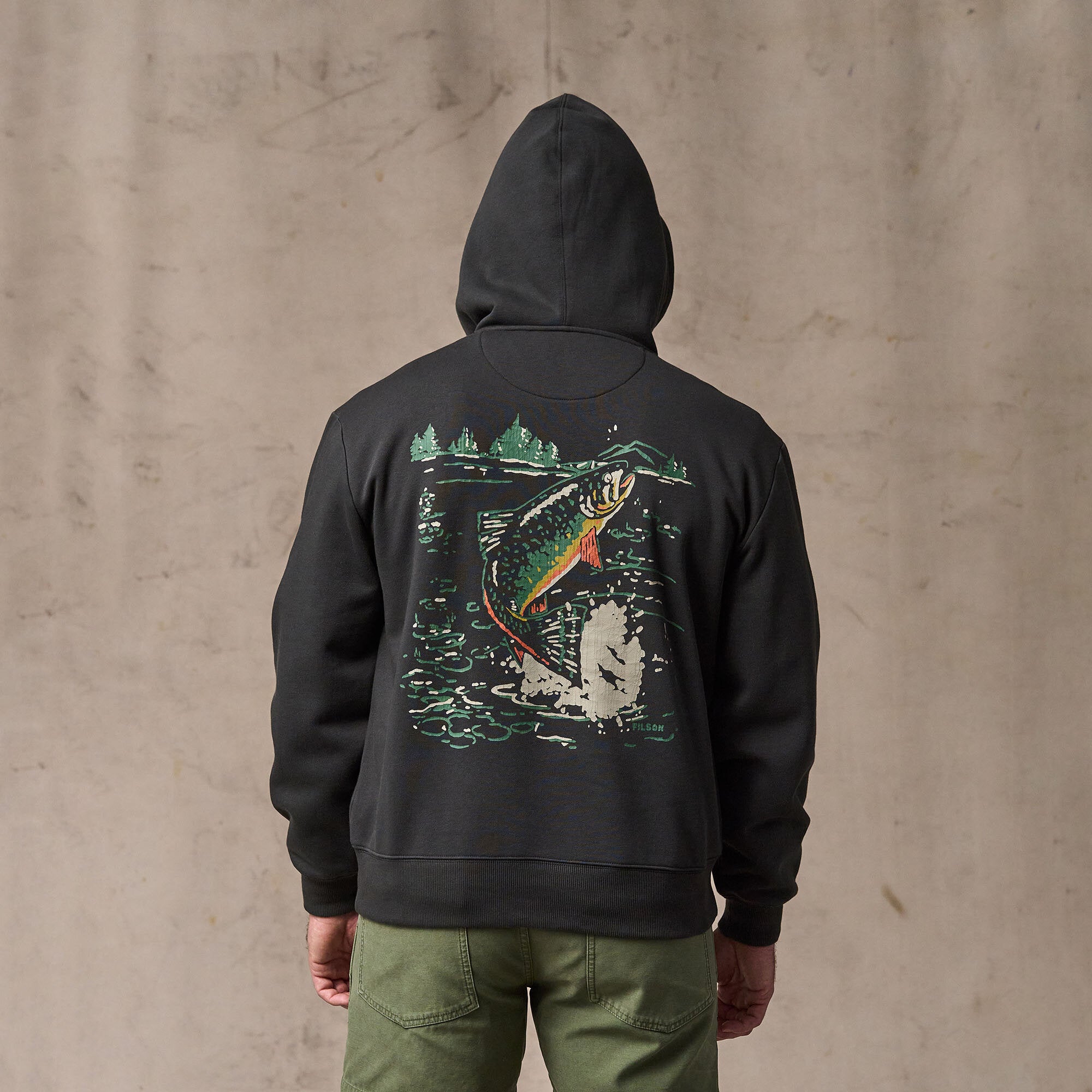 Our versatile Graphic Hoodie is an ideal midweight layer for a cool morning run, around a campfire, or under a vest on the jobsite. Made with cotton fleece blended with polyester for strength and shrinkage control. Ribbed hem and cuffs are knitted with cotton and elastane for lasting stretch and recovery. The drawcord-adjustable hood is double-layer for added warmth and structure. Kangaroo front pocket. Classic logo graphics.