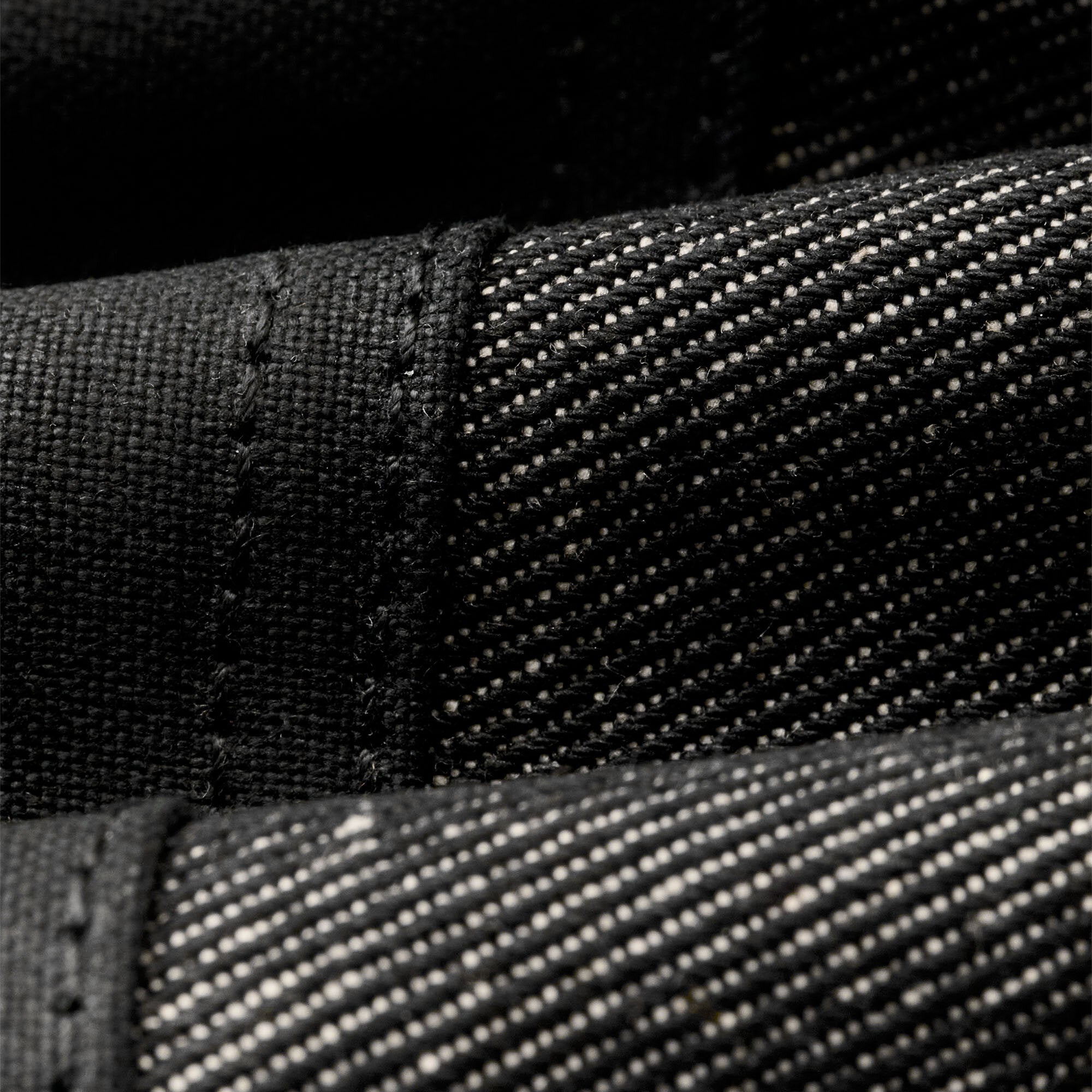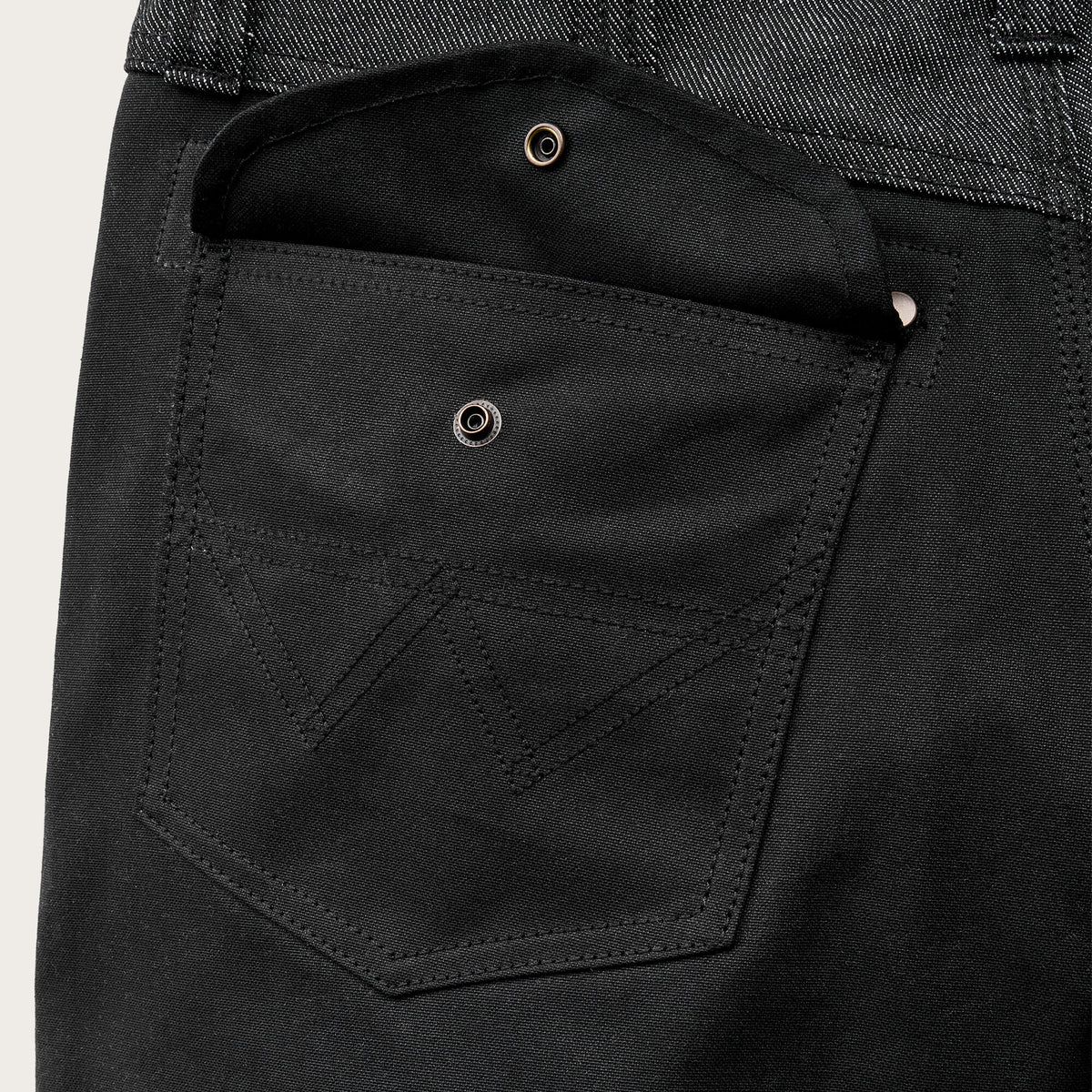 14.5-oz. 100% cotton denim + 14-oz. 100% cotton oil finish Tin Cloth