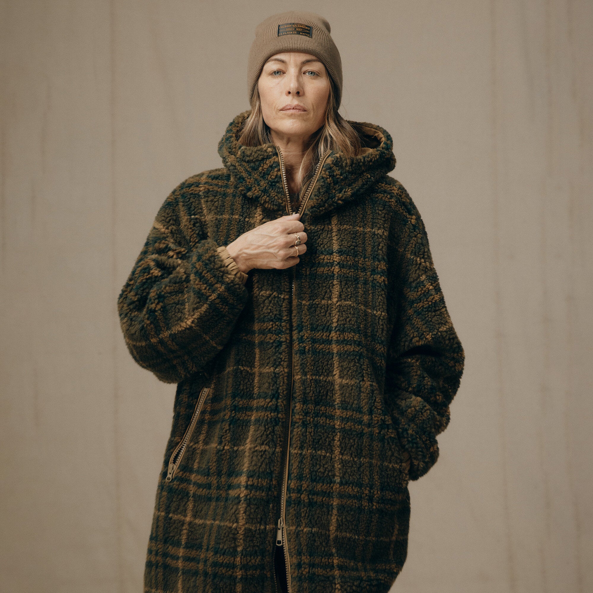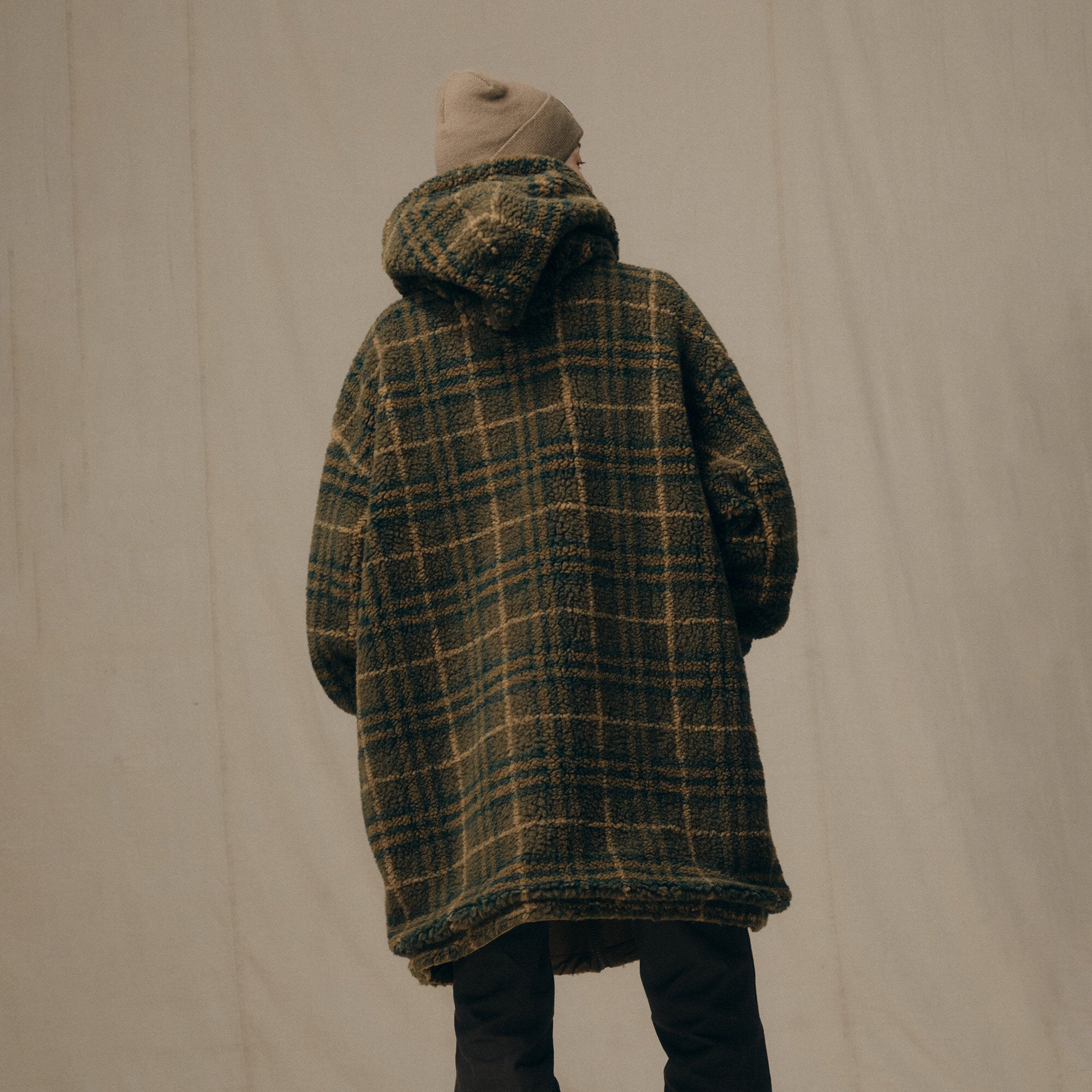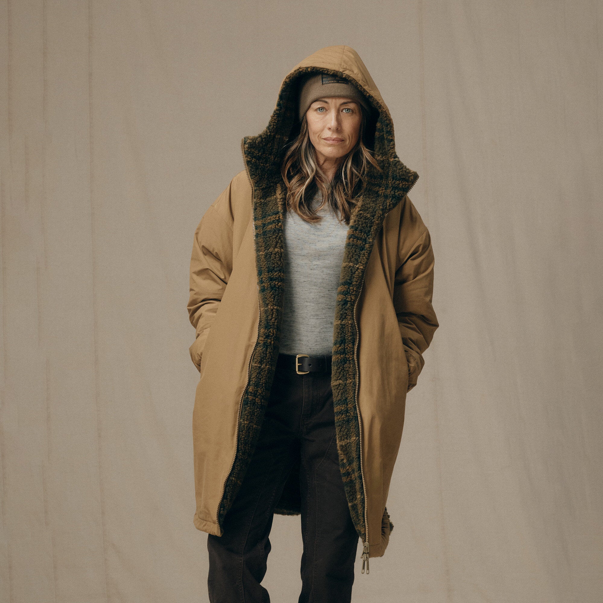 This coat provides warmth that extends to the knees. Reversible, it can be worn with the cotton or fleece side facing out. The high-pile fleece is a premium wool blend for durability and warmth. The tightly woven cotton blocks cold winds. The two-way front zipper can be opened at the knees for ease of movement and extends to chin-height. Elastic cuffs provide a custom fit and seal out the cold. Zippered hand pockets on both surfaces keep essentials safe. Drawcord-adjustable hood.