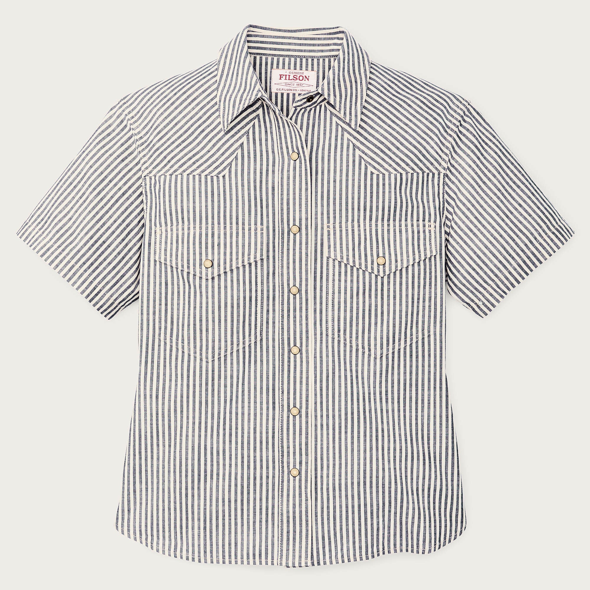 The Women’s Short-Sleeve Chambray Western Shirt combines classic Western design with the lightness of 4.9-oz. cotton chambray. The fabric is airy, smooth, and naturally comfortable in warm weather.